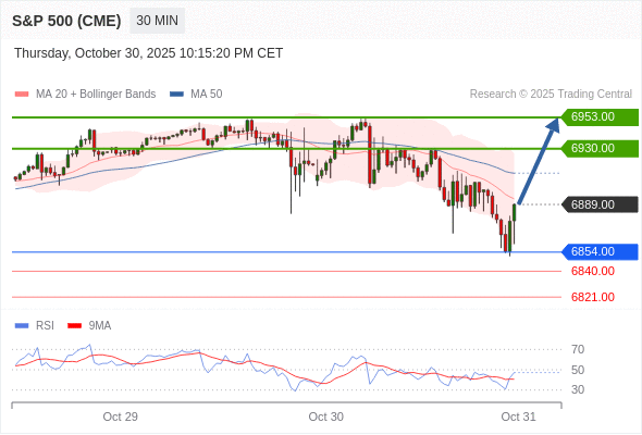 在 6854.00 之上,看涨,目标价位为 6930.00 ,然后为 6953.00 。